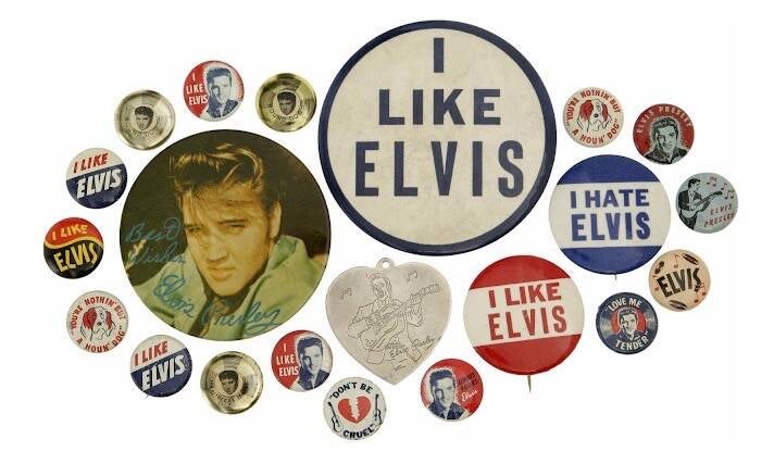 Maar zoals eerder gezegd, doet hij alles nèt even anders dan wat gangbaar is, hij denkt buiten de gebaande denken en dat laat ook wel het voorbeeld zien van de buttons die hij liet maken. Er waren niet alleen buttons met “I like Elvis”, maar ook liet hij buttons met “I hate Elvis” drukken.
